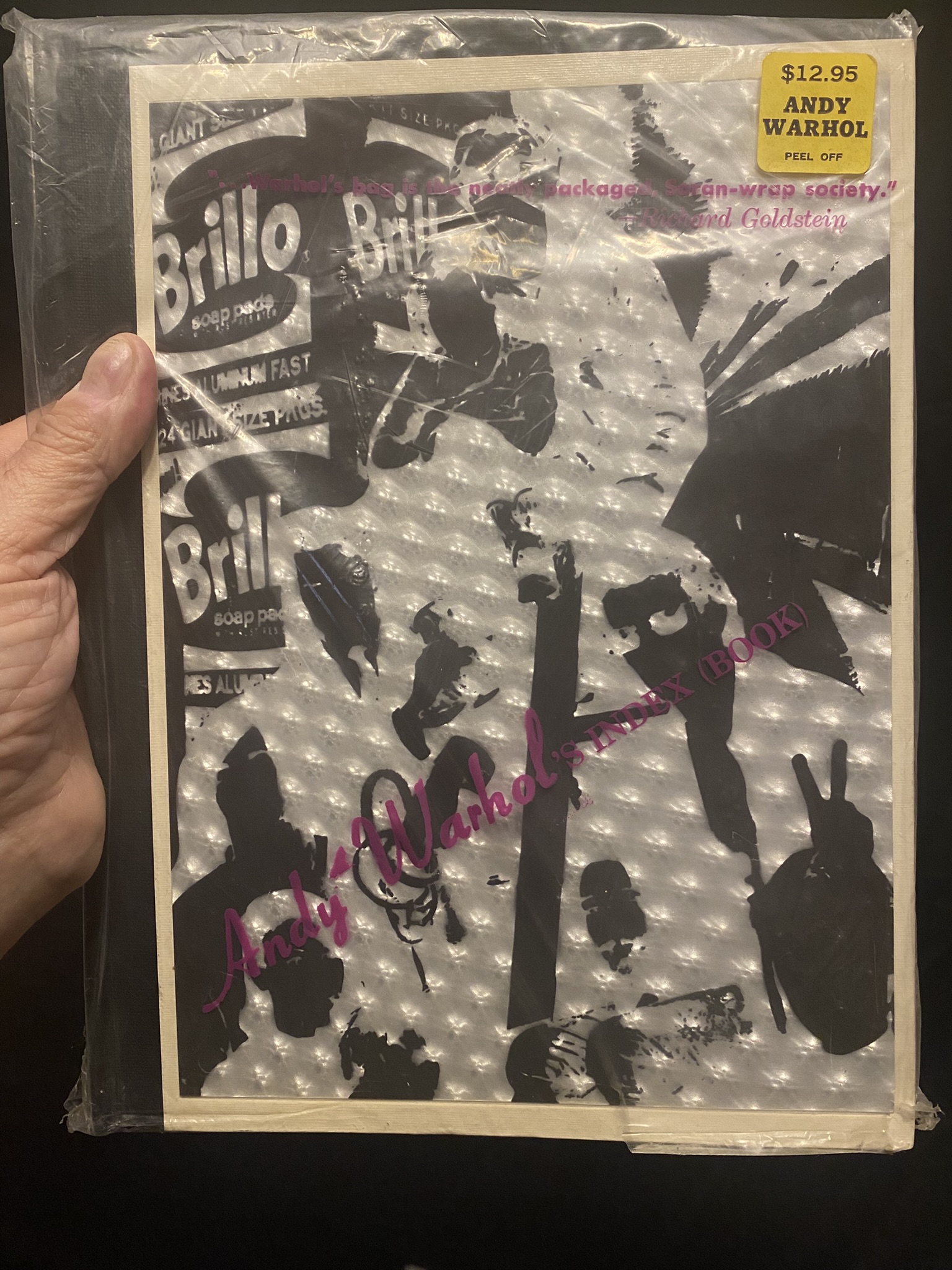 Andy Warhol Index Book. This particular copy is still in its original plastic wrap, with original price sticker. There is one small