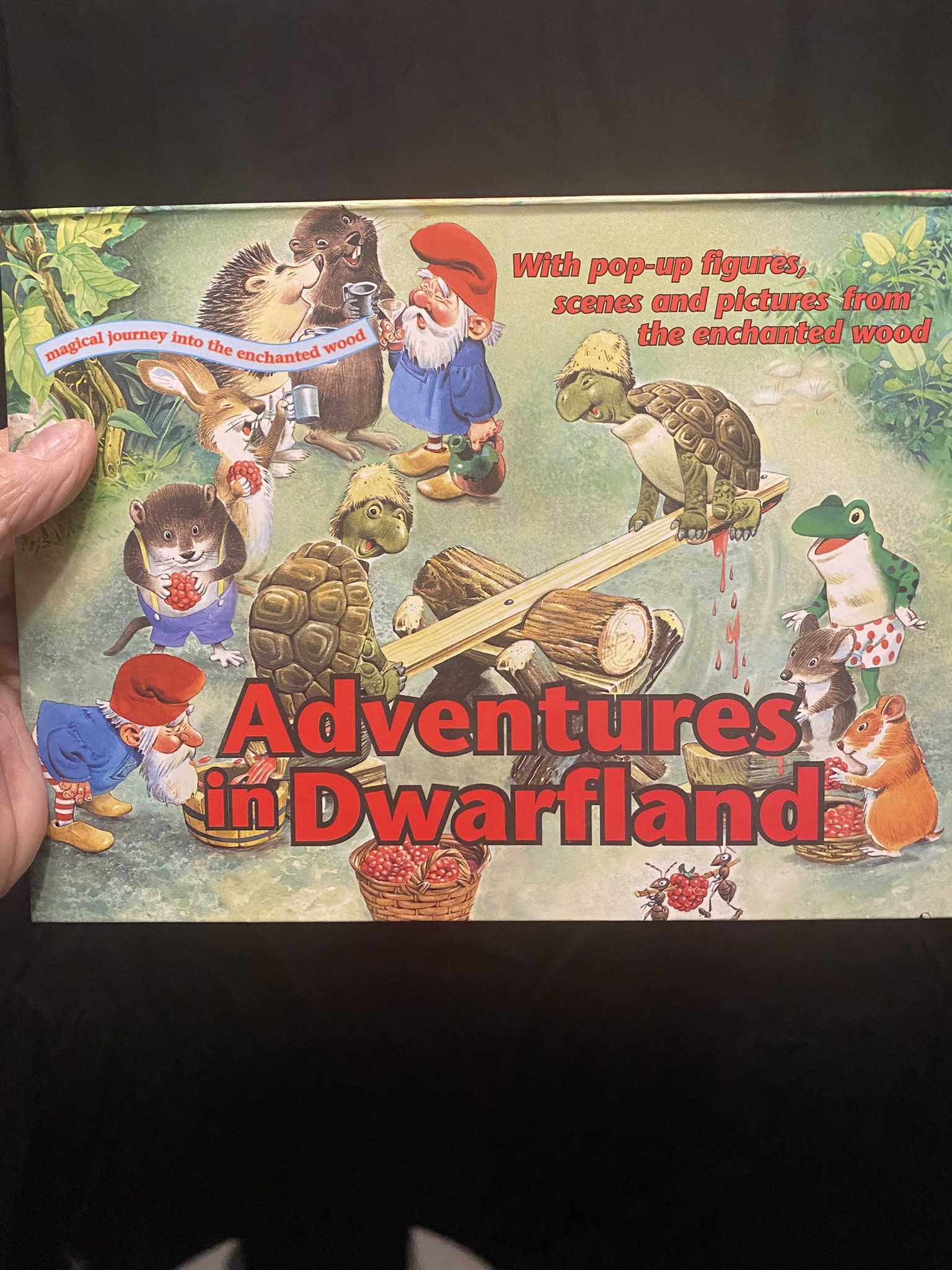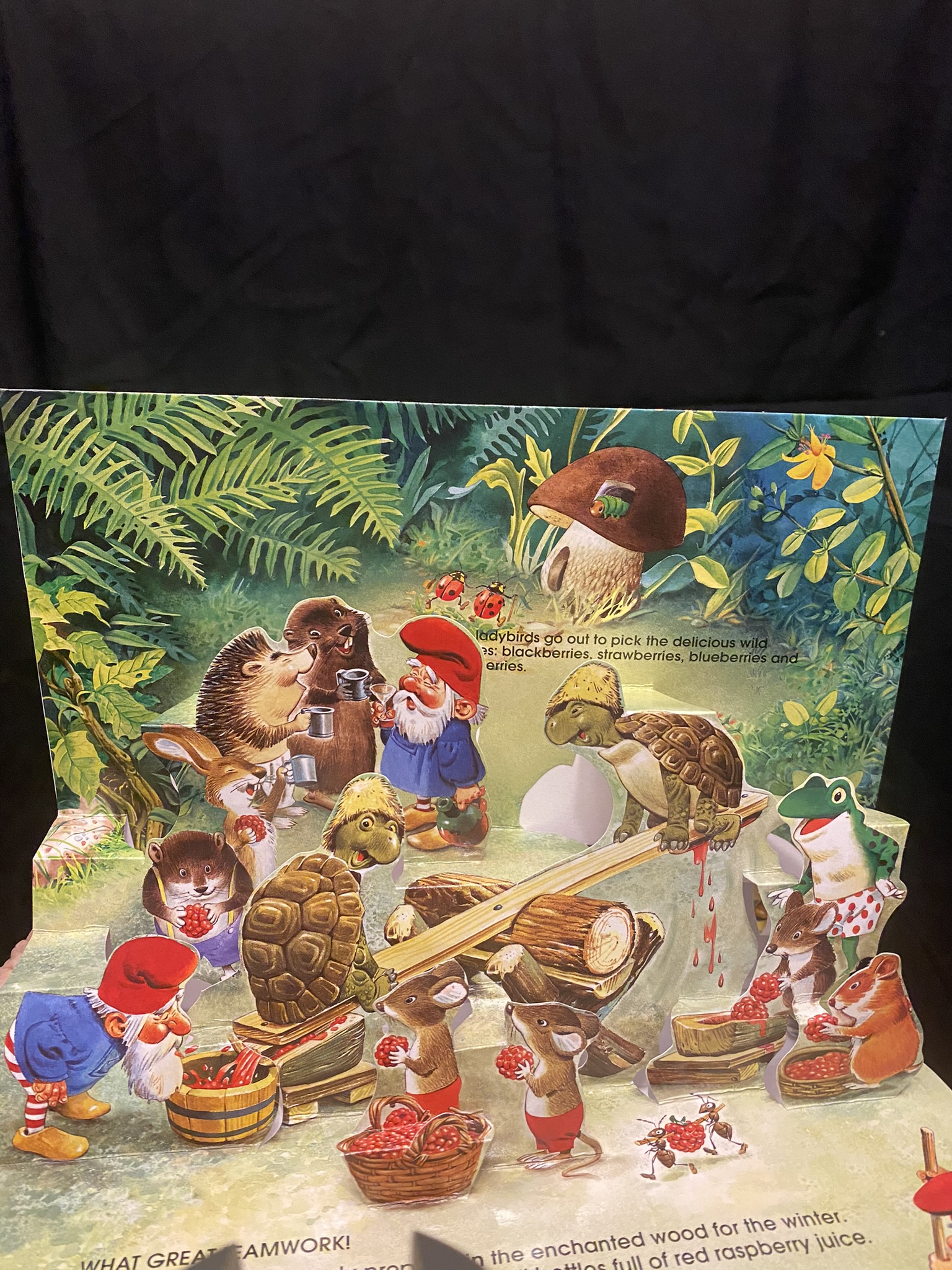 part of which is making bottles of raspberry juice. The scene inside the book shows the two tortoises on the teeter-totter crushing huge raspberries each time